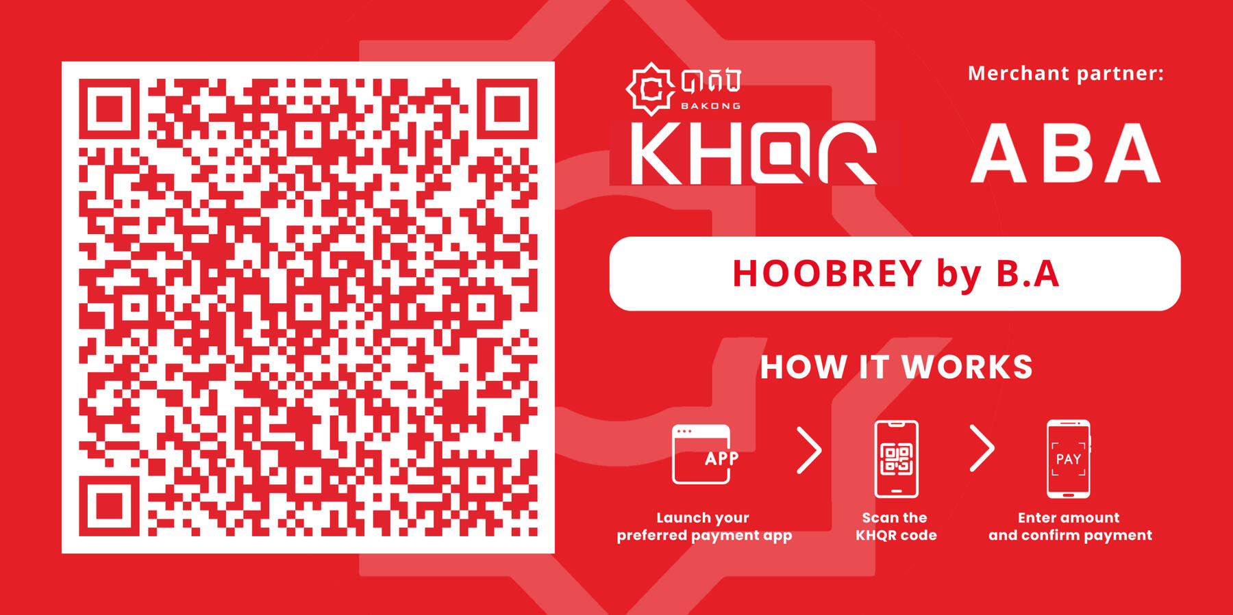 Scan the QR code with your mobile banking or e-wallet app that supports KHQR.
